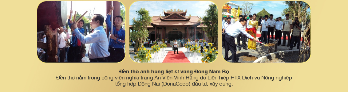 Dân trí Ngày 8/1, Liên hiệp Hợp tác xã Dịch vụ Nông nghiệp tổng hợp Đồng Nai (Dona Coop) chính thức khánh thành Đền thờ liệt sĩ miền Đông nam bộ (xã Tân An, huyện Vĩnh Cữu, tỉnh Đồng Nai) và ra mắt công viên nghĩa trang An viên Vĩnh Hằng.